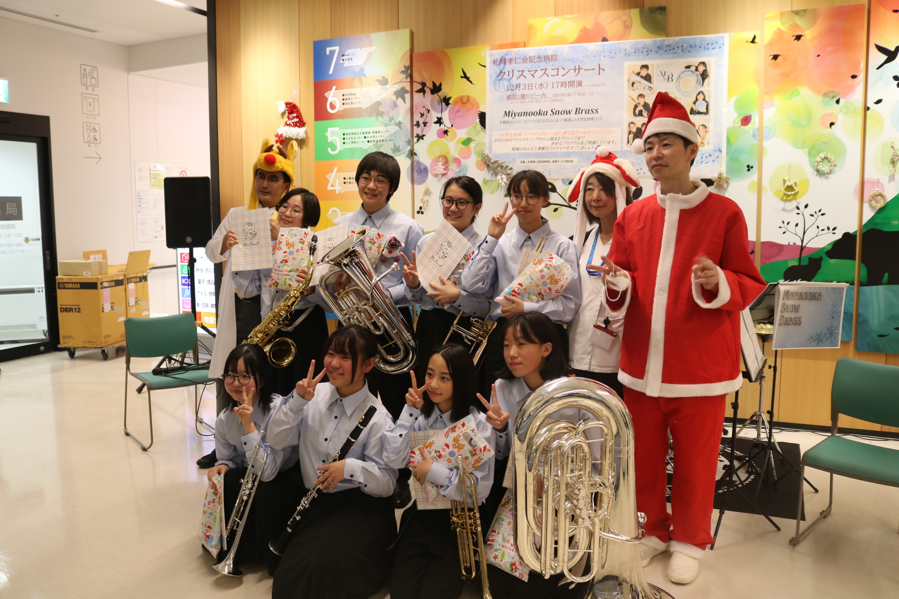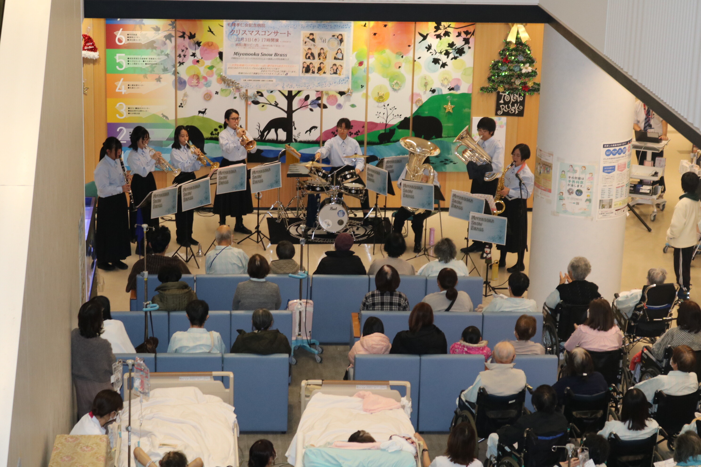 札幌孝仁会記念病院では、2025年12月3日(水)当院ロビーにて 中学生地域バンド「Miyanooka Snow Brass」をお招きし「クリスマスコンサート2025」を開催しました。患者様、一般の皆様はじめ 100名を超える多くの方にお越しいただきました。